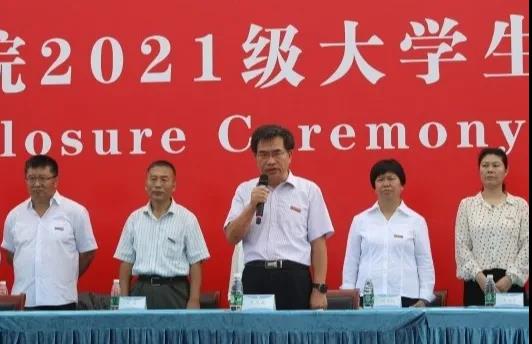 他们以意气风发的状态整齐有序的队列标准娴熟的动作,充分展示新同学团结奋进斗志昂扬的青春风貌,表达了崇军尚武爱国爱校的深厚情怀。闭营式后,开学典礼拉开帷幕。学院党委委员、副院长申奕主持。在热烈的掌声中,学院党委副书记、院长于兰平为2021级新生致辞。
