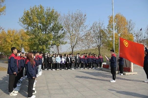 随后,全体团员青年在“不忘初心、牢记使命”的标语前,面向团旗开展了“学四史 悟真知 践行动”主题团日活动。来自环化学院的团员代表杨昭金向广大团员发起了“学四史 悟真知 践行动”的倡议,倡议广大团员以史为鉴、不忘初心、知行合一、牢记使命,高举团旗跟党走,认真践行社会主义核心价值观,为中华民族伟大复兴做出当代青年应有的贡献。最后,学院团委副书记李响带领全体团员青年重温了入团誓词,并对大家提出了践行青春誓言、传承"五四"精神、实绩回报祖国的具体要求,进一步激发了大家作为共青团员的光荣感和责任感。