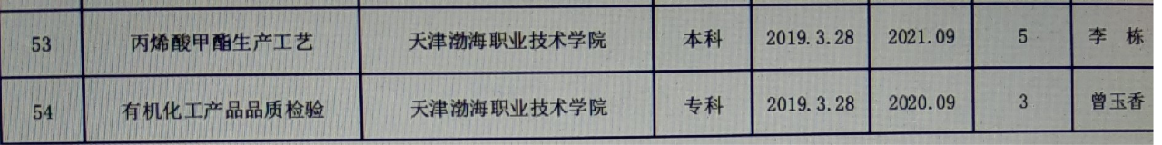 为加快构建石油和化工终身教育体系,支撑、服务石油和化工行业高质量发展,全国石油和化工职业教育教学指导委员会决定将国家开放大学石油和化工系列课程建设项目列为 2019 年度中国石油和化工教育科学研究终身教育体系专项课题。学院承建的国家开放大学化学工程与工艺专业(本科)《丙烯酸甲酯生产工艺》和工业分析技术专业(专科)《有机化工产品品质检验》课程资源建设项目获批立项。