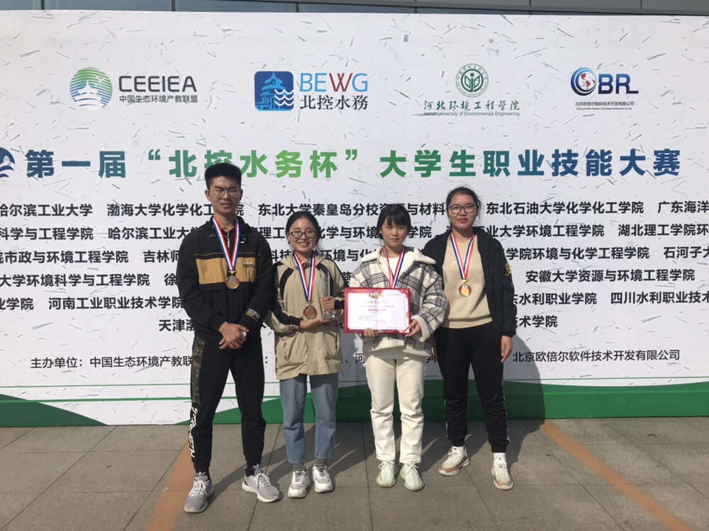 2019年10月25-27日,学院环境与化工学院代表队参加了由中国生态环境产教联盟主办,北控水务集团、河北环境工程学院承办的第一届“北控水务杯”大学生职业技能大赛。本次比赛是学院首次参加,也是高职本科同台竞技,共有来自全国各地29所高职本科院校50个代表队200名选手参加,赛项分为虚拟仿真赛和化学检验赛两个项目。高职本科比赛方案一致,混合比赛。学院环境与化工学院代表队选派18级环境工程技术专业屈苏梦、范瑞雪、李书贤、梁高康4名选手参加了比赛。