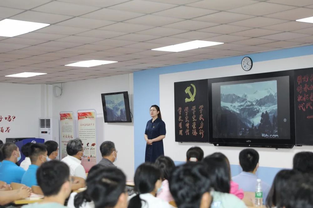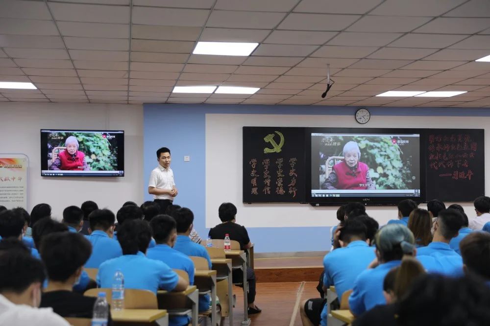 课堂上风云激荡,一个个隽永的红色故事流淌而出、叩击人心。老师们精心准备,选取了党的百年历程各个阶段中的感人红色故事,反复排练打磨,精益求精,以小切口呈现大主题,用富有感染力的声音,或激情昂扬、或铿锵有力、或娓娓道来,精彩讲述一个个鲜活的红色故事。伴随着视频声画,一个个党史人物,仿佛穿越百年,来到了同学们面前,回到那一段峥嵘岁月,再现了一个个光辉的英雄形象,展现了共产党人不忘初心、牢记使命的责任担当。