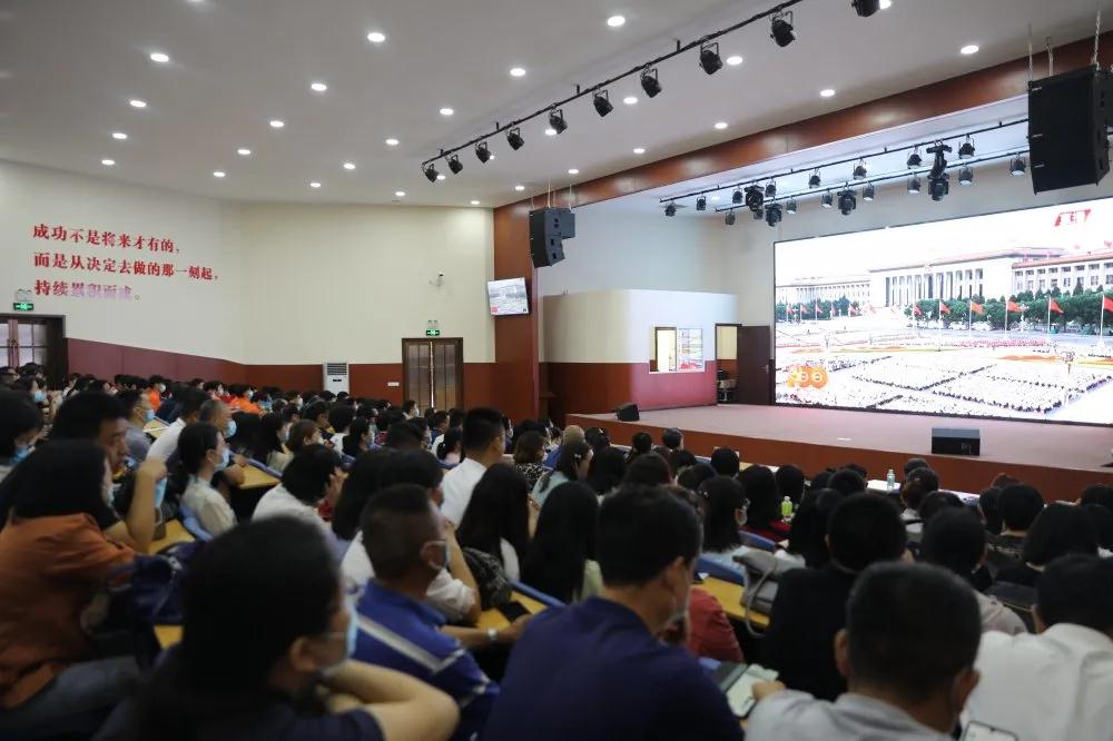 学院组织广大党员、教职工和青年学生集中在创新创业俱乐部、多媒体教室等场所,仪容严整、精神饱满地收看了大会盛况直播,共同见证这一激动人心的历史性时刻。鲜艳的旗帜、庄严的场景、嘹亮的合唱、热烈的氛围,感染着每一位在场的师生。大家聚精会神、目不转睛地观看直播盛况,感怀中国共产党100年来的光辉历程和取得的历史性成就、发生的历史性变革,共同庆祝中国共产党百年华诞。