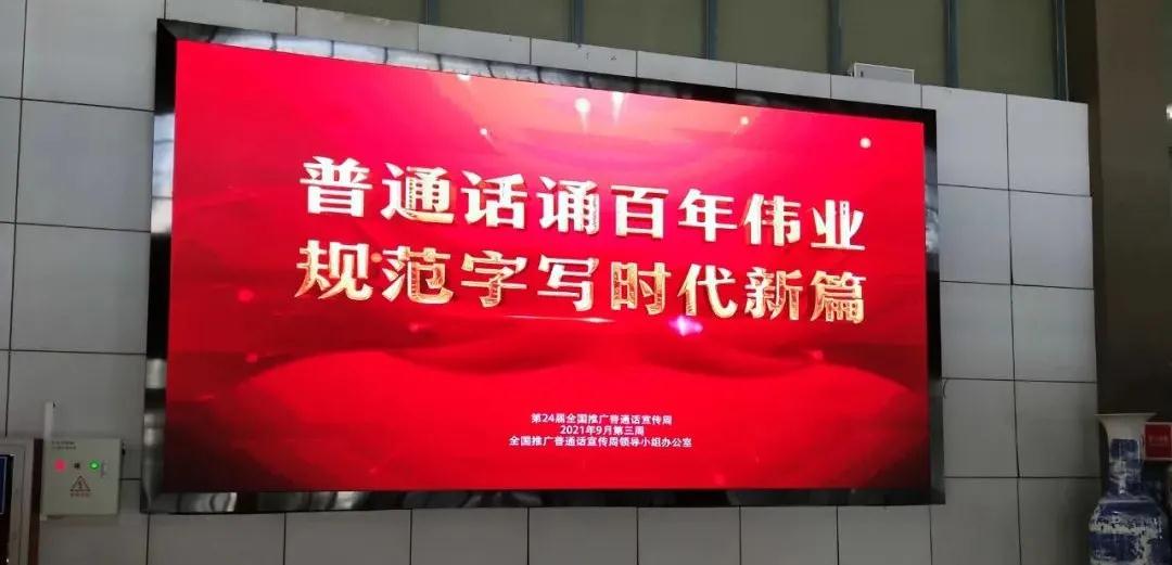推普周前夕,学院制作了普通话宣传倡议书,在校园进行发放,组织专人进行了现场宣讲。校园宣传栏张贴了普通话宣传海报;LED大屏滚动播放普通话宣传视频。学院还积极组织广大师生观看学习,营造出了“推广普通话、书写规范字”的浓厚校园文化氛围。