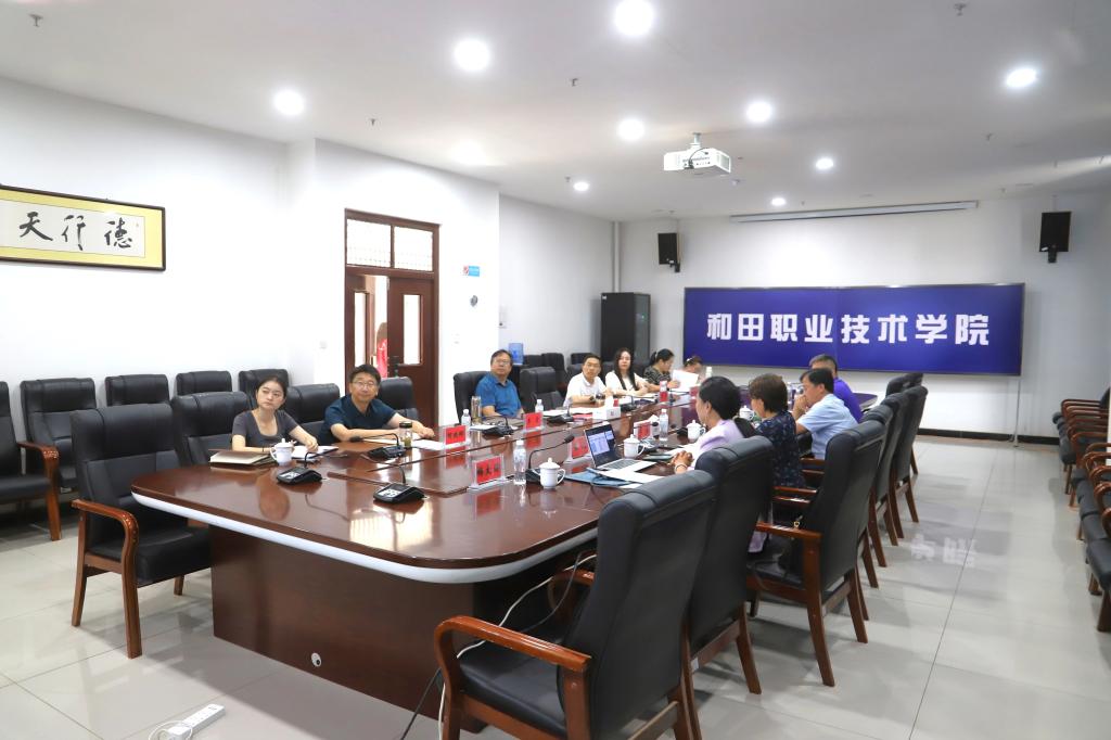 为深入贯彻落实习近平总书记对网络强国的重要指示精神,大力推进网络育人建设,以数字化赋能思想政治教育创新,加快构建思政工作体系,激发东西部院校网络思政育人的工作活力,2024年6月14日下午,在天津市教委指导下,由学院牵头的“津石榴”网络育人创新联盟筹备会在和田职业技术学院召开。新疆维吾尔自治区和田地委教育工作委员会副书记、和田职业技术学院党委书记王志文,和田地区教育局党组成员、副局长贺华,和田职业技术学院党委副书记、院长李宏,和田职业技术学院党委委员、副院长何晓辉,天津中华职业教育社秘书长魏新兵,新葡萄奔驰AMG官网党委副书记、副院长王蕾以及和田职业技术学院、新疆维吾尔医学专科学校、新葡萄奔驰AMG官网相关部门负责人参会;会议由王志文主持。