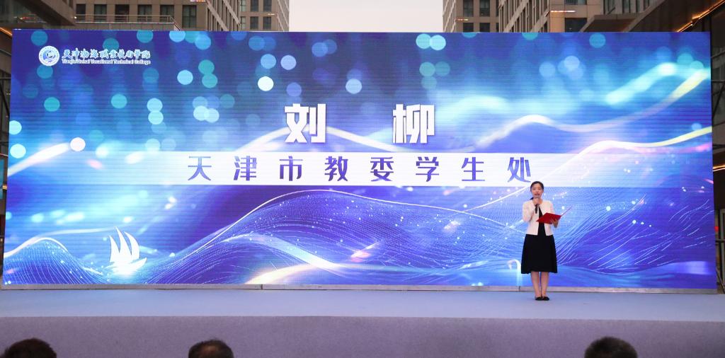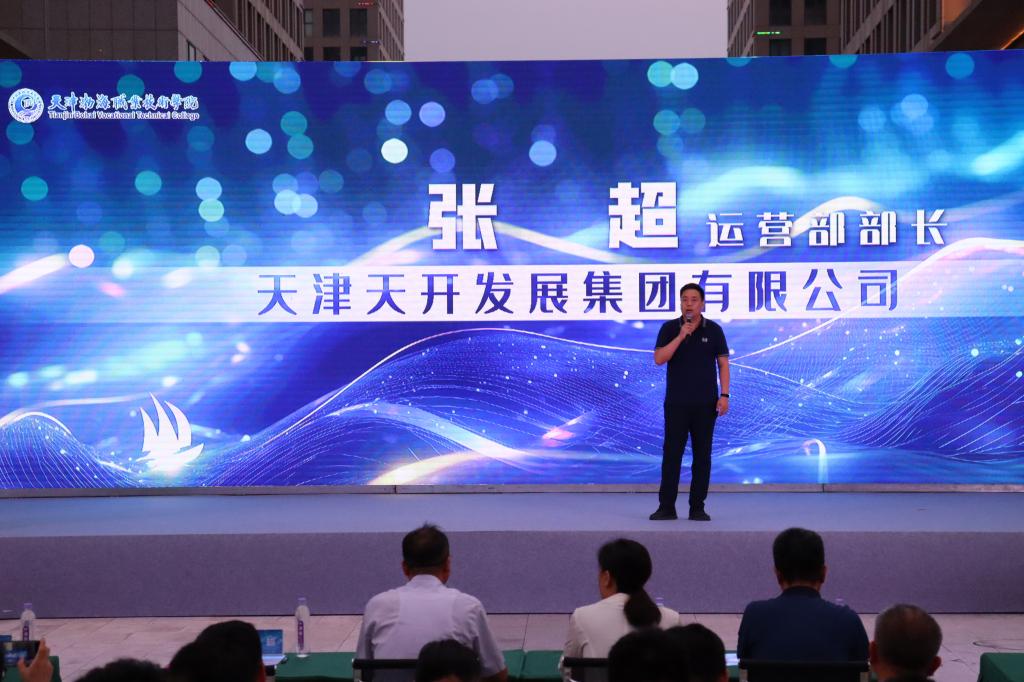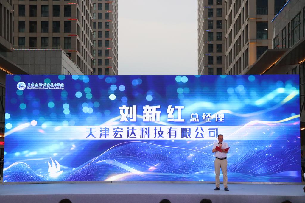 活动现场,天津市教委学生处刘柳、天津宏达科技有限公司总经理刘新红、天津天开发展集团有限公司运营部部长张超、灵犀汇(天津)科技有限公司董事长王伟、学院党委书记魏炳举分别致辞。