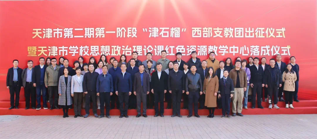 图1:天津市第二期第一阶段“津石榴”西部支教团出征仪式合影