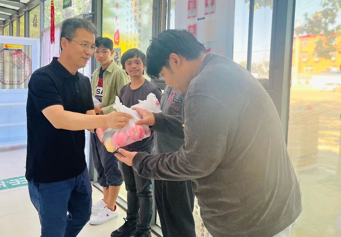 为进一步丰富中秋节日期间在校留学生的生活,确保每位学子都能在这个传统节日里感受到浓浓的温情与欢乐。9月15日,学院党委书记魏炳举深入留学生宿舍走访慰问在校留学生,代表学院向他们致以节日问候和祝福,并为他们送去月饼等中秋礼品。