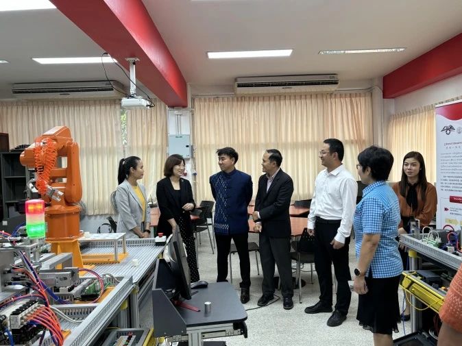 会后,与会人员一同参观了泰国鲁班工坊机电一机化技术专业、物联网应用技术专业、新能源汽车技术专业、机械制造及自动化技术专业实训中心。