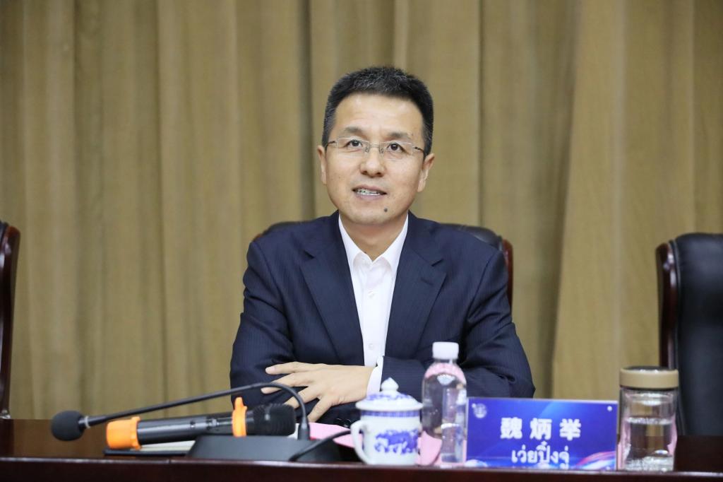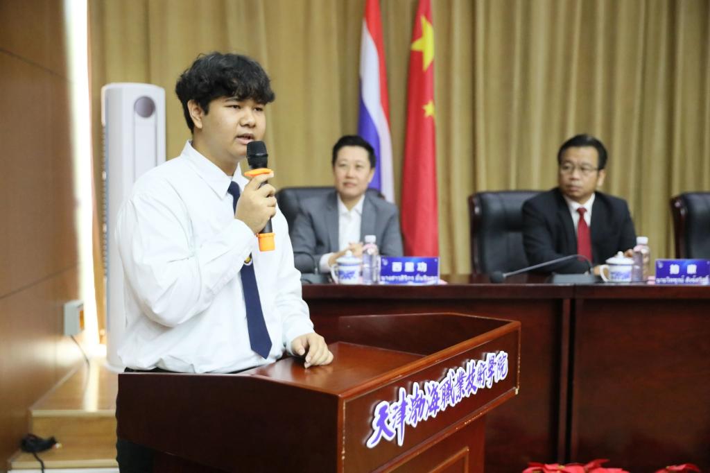 魏炳举代表学院全体师生热烈欢迎各位新同学,并对泰方院校领导、教师的辛勤培养表示衷心感谢。他简要介绍了学院改革发展成就,并对学生提出三点嘱托,一是志存高远,励志笃行,咬定目标加油干;二是躬耕实践,勤学不息, 练就高强技能本领;三是砥砺品德,广交朋友,争做中泰文化交流使者。