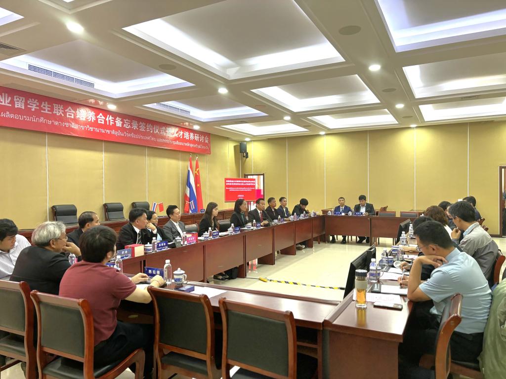 10月14日,学院召开泰国鲁班工坊国际专业留学生联合培养签约仪式暨人才培养研讨会。学院党委书记魏炳举,党委副书记、院长花玉香,泰国大城技术学院院长玛悠丽,泰国红统技术学院院长拍暾等领导出席。