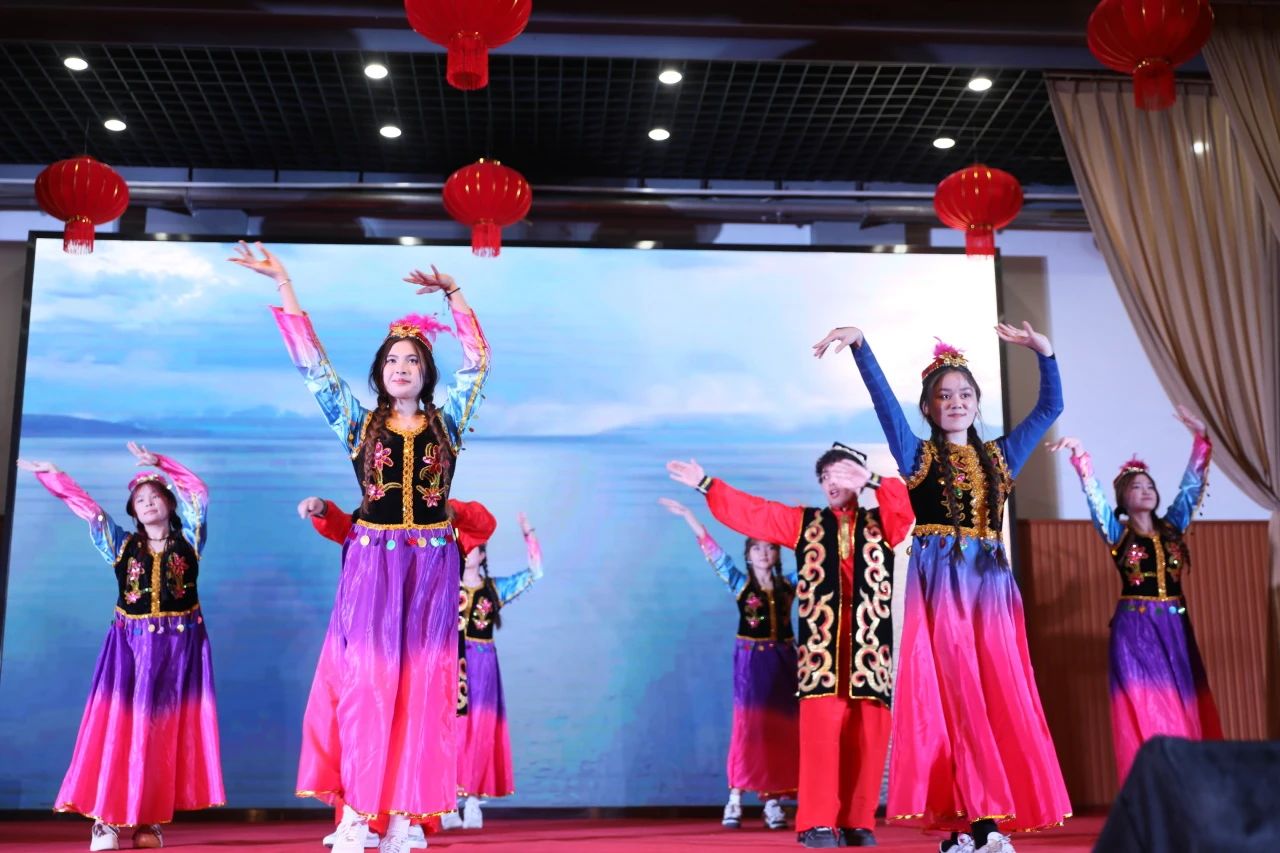 而“民族团结篇”里,蒙古舞、维吾尔族舞、藏族舞等各民族舞蹈汇聚一堂,彰显了民族团结一家亲的美好画卷。这对于构建和谐多元的校园文化至关重要,让来自不同民族的师生在校园中感受到温暖与尊重。民族团结的文化氛围有利于进一步促进各民族师生之间的交流与合作,形成强大的凝聚力,共同为学院的发展贡献力量,推动学院在多元化的环境中稳定发展,促进各民族师生之间的交流与合作,形成强大的凝聚力,共同为学院的发展贡献力量,推动学院在多元化的环境中稳定发展。