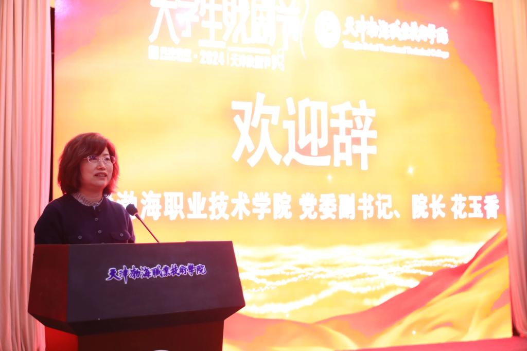 花玉香代表活动承办方致欢迎辞,介绍了学院日常文化建设特别是戏剧节活动相关的工作进展情况。她表示,大学生戏剧节是对习近平总书记重要指示精神的有力践行,对学生成长成才意义重大,本届戏剧节特色鲜明,艺术门类全面拓展,涵盖多种剧目形式,特别设置传统文化艺术作品征集门类,充分激发了渤海青年学子对传统文化的创新发展热情。她要求,学院筹备组要全力以赴、精心准备,协调学院各相关部门提供全流程支持,确保活动任务高质量完成。