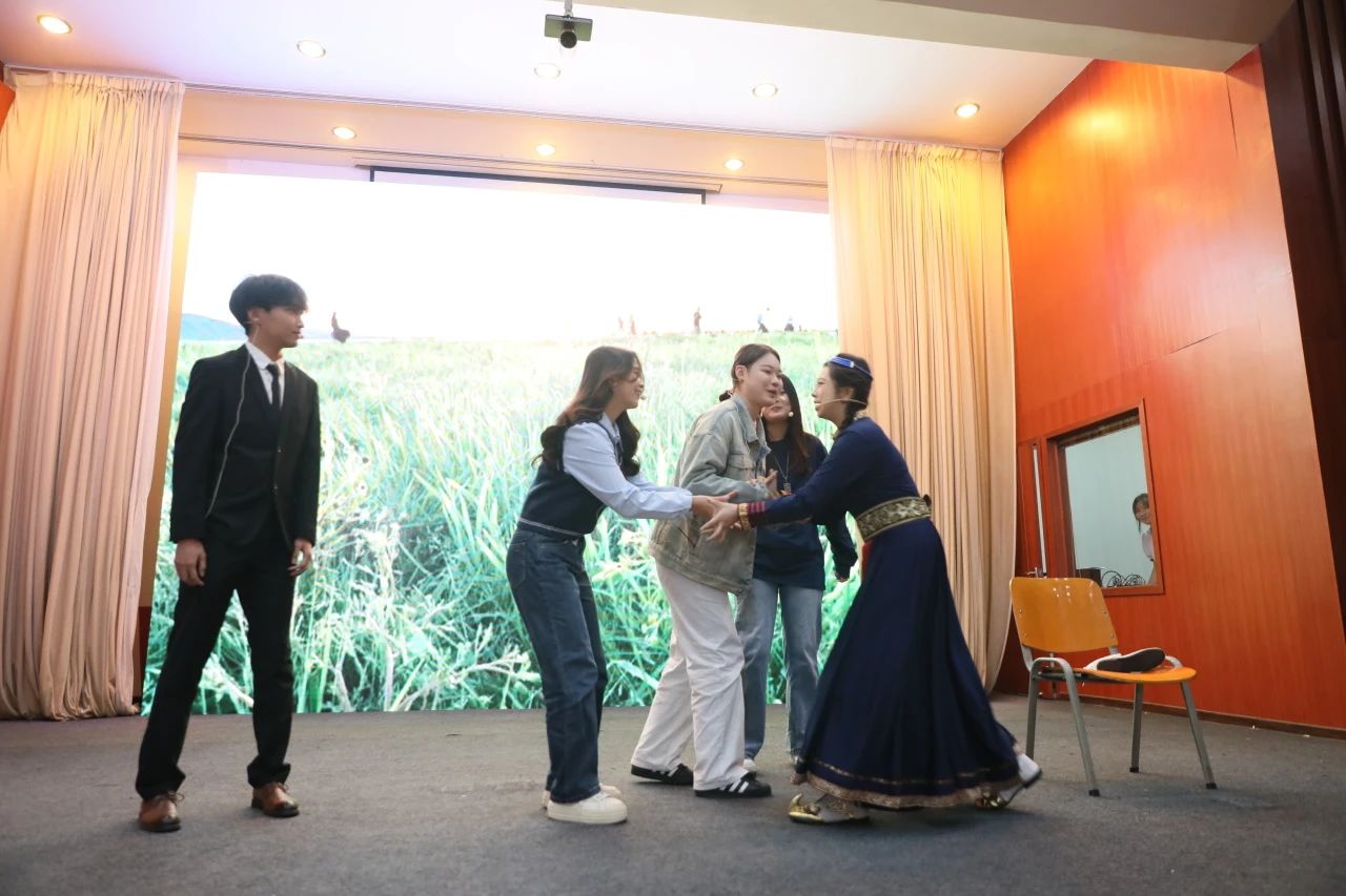 活动中,话剧《初心》和《草原的母亲》等优秀剧目进行了汇报演出,学生演员们的精彩表演,展现了大学生戏剧的独特魅力和创作才华。天津北方演艺集团专家对剧目进行了精彩点评,为学生们提供了宝贵的专业意见,为他们在戏剧艺术道路上不断进步提供了重要助力。随后,各位专家老师与同学们上台与同学们开展了近一小时的现场交流,为同学们细致讲述了戏剧表演的相关知识,耐心解答了老师、同学们现场提出的戏剧创作、表演相关疑问,促进了演职团队专业素养的进一步提升。通过本次活动,同学们纷纷表示对本届戏剧节的后续活动充满期待,希望参与到更为丰富、更加精彩的系列活动中,为传承戏剧这一优秀文化形式贡献属于渤海的青春力量。