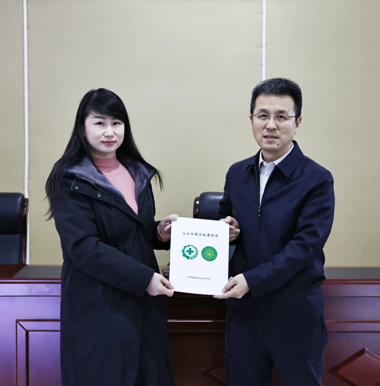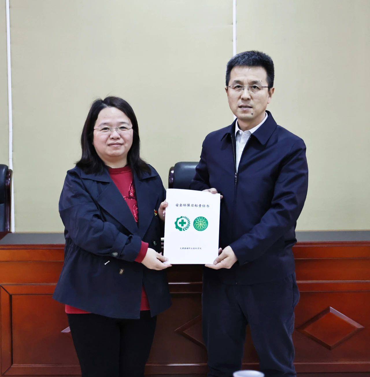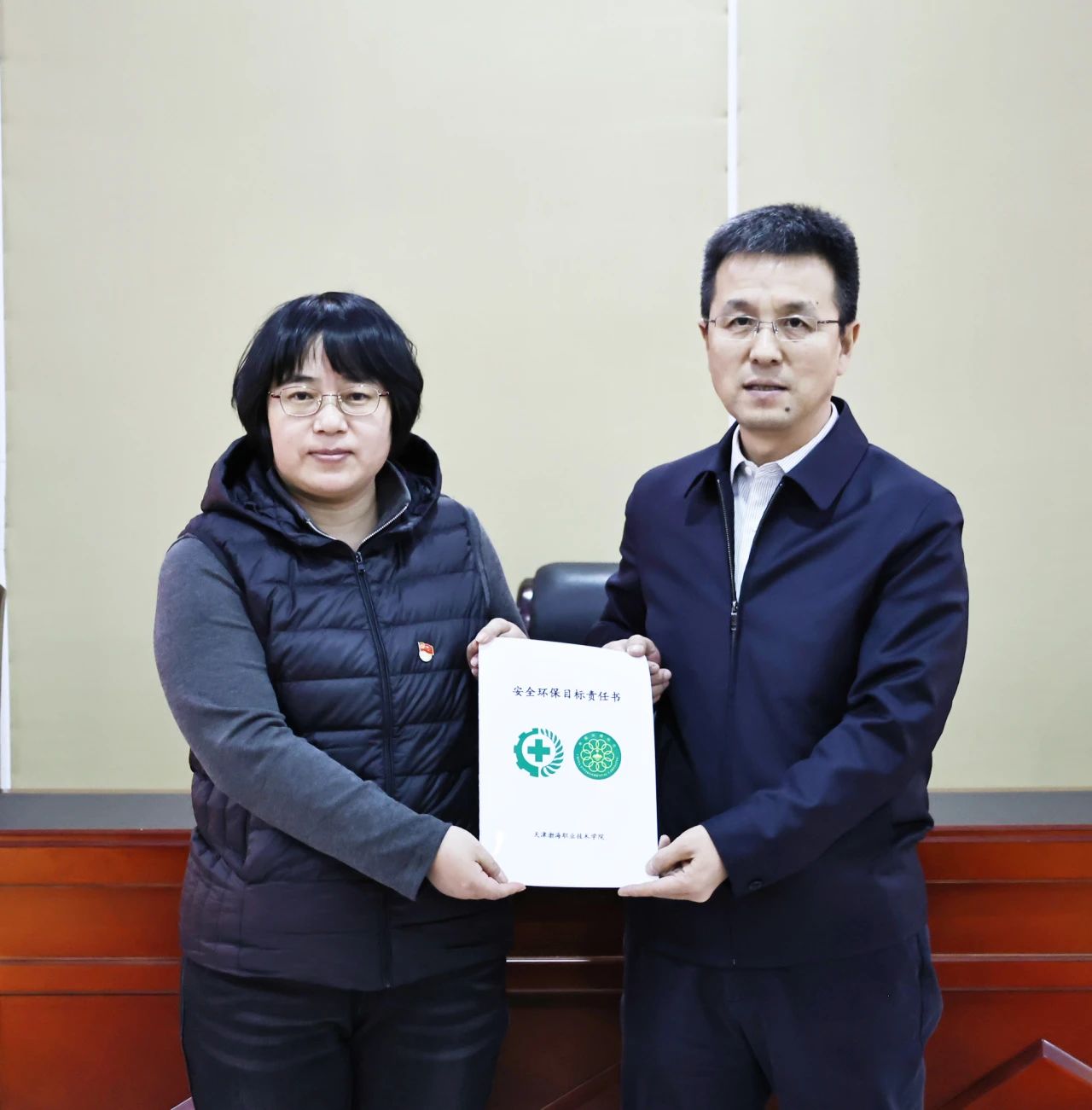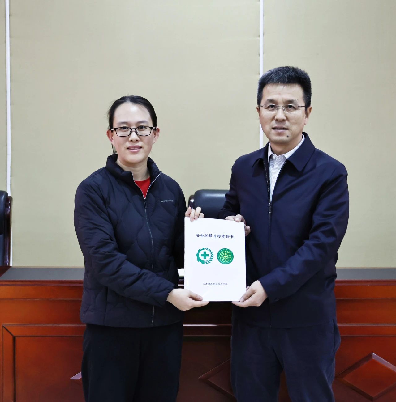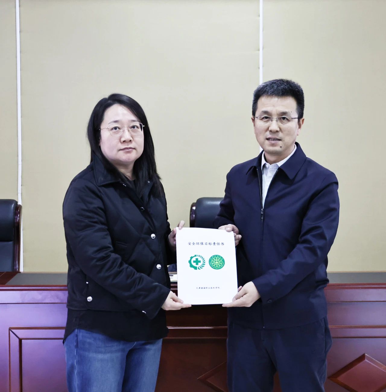 学校全体部门、二级学院向安委会递交2025年度安全环保目标责任书、承诺书。