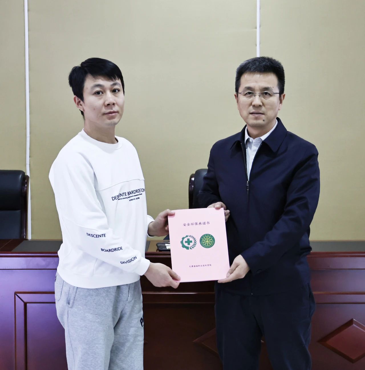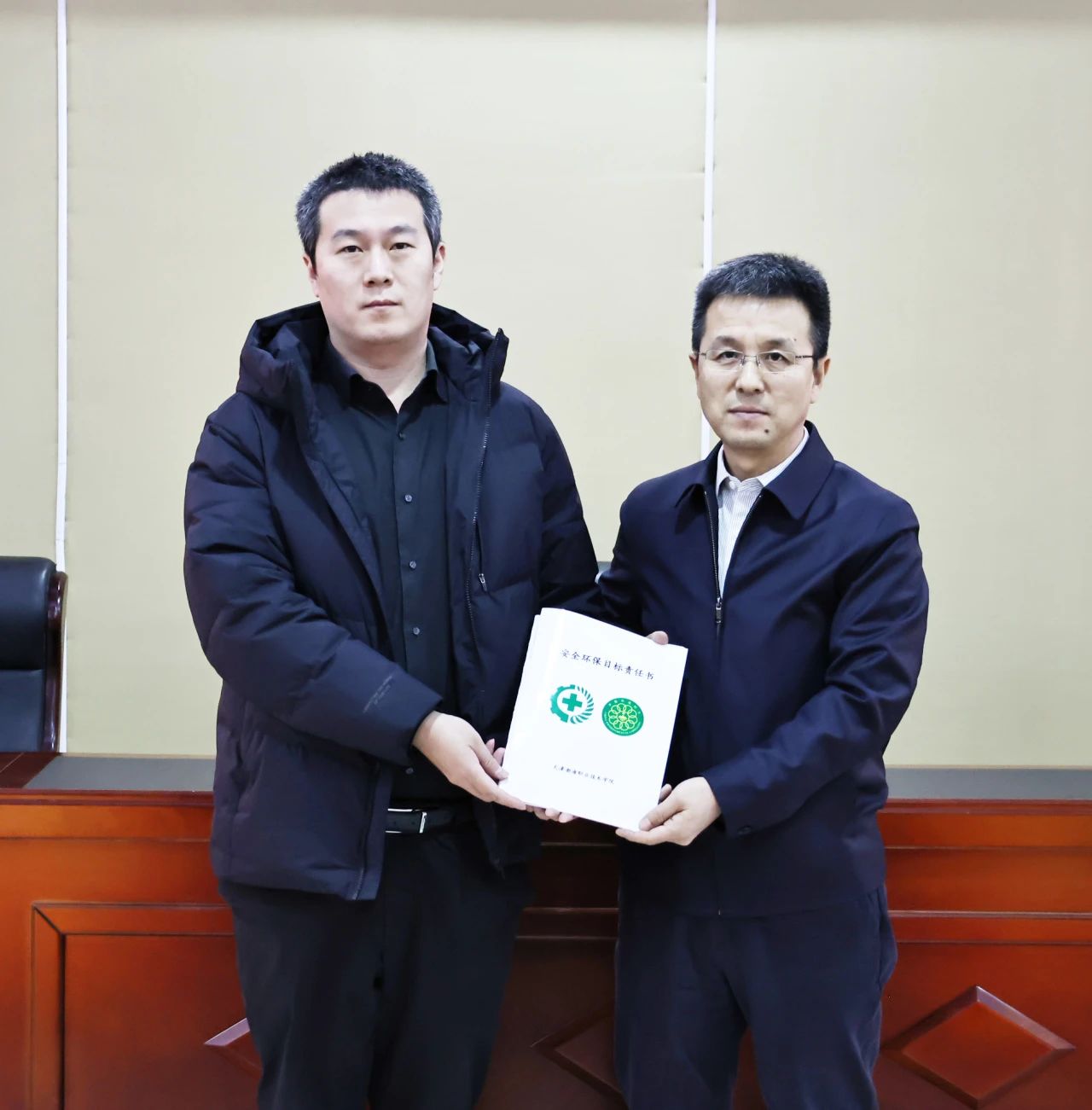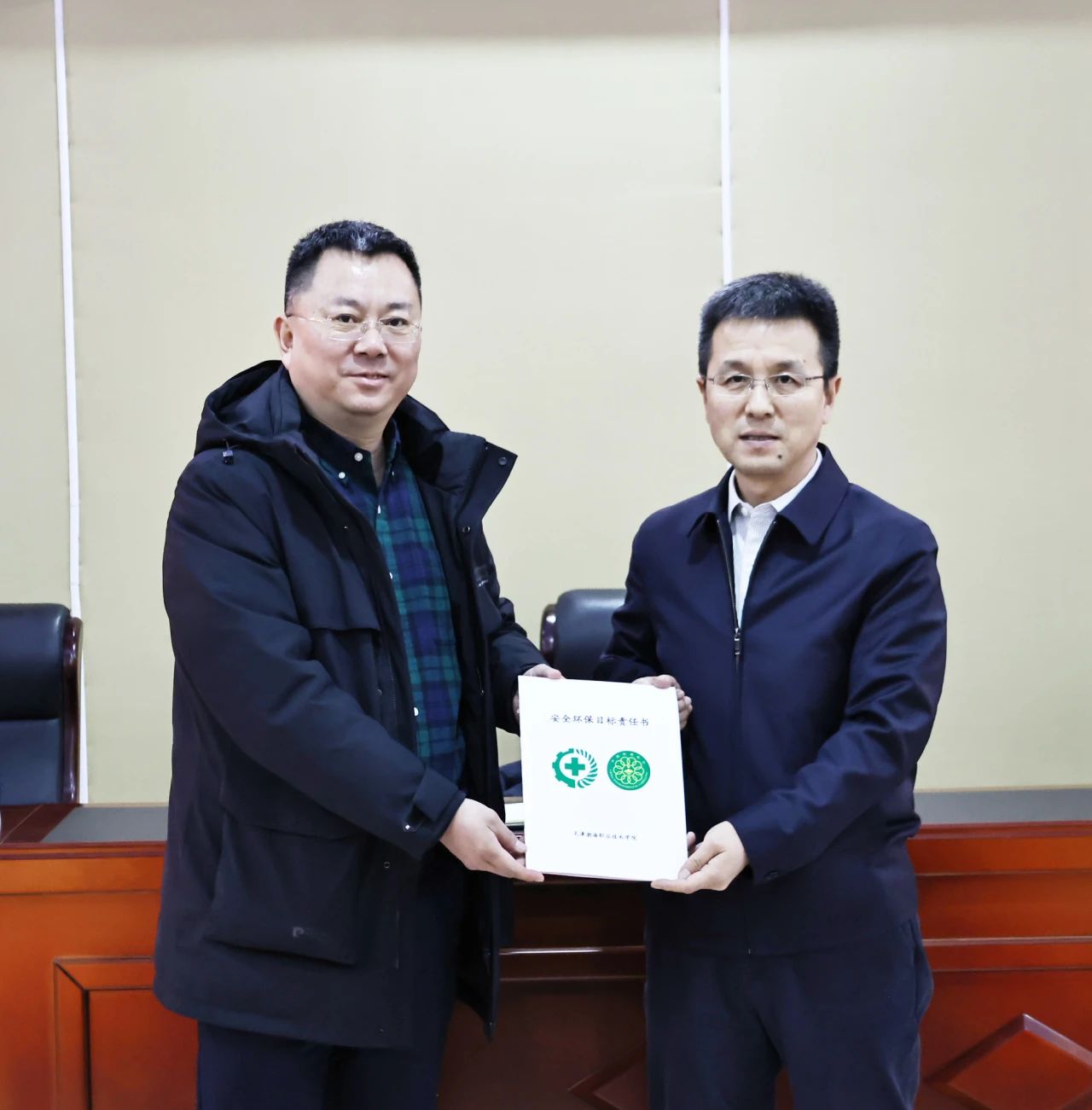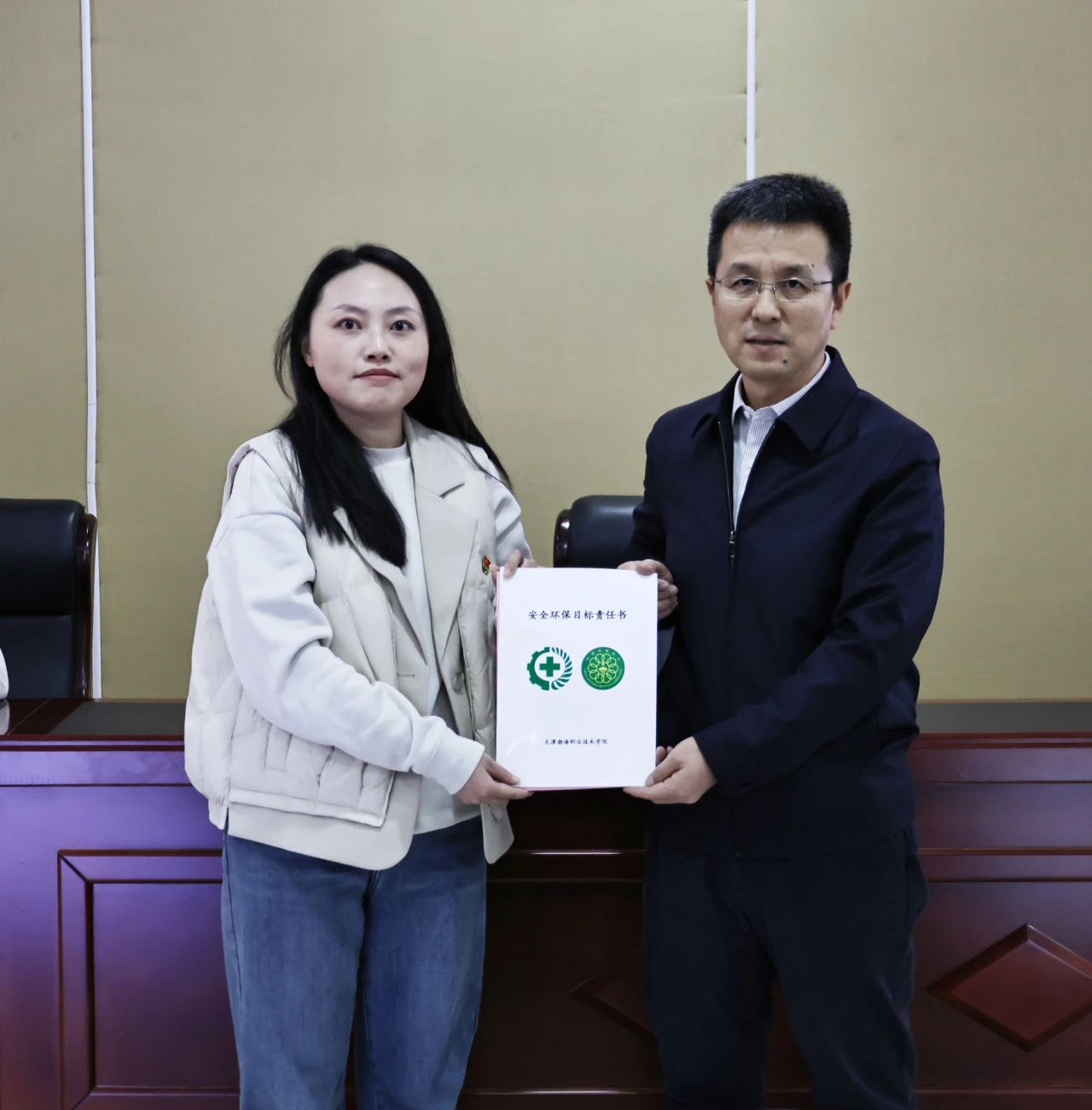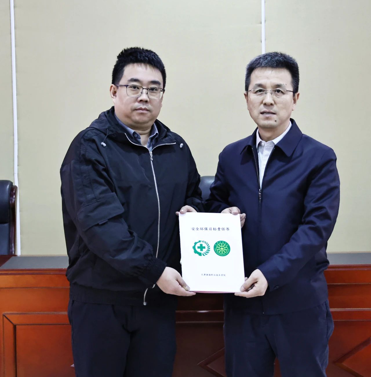 学校全体部门、二级学院向安委会递交2025年度安全环保目标责任书、承诺书。