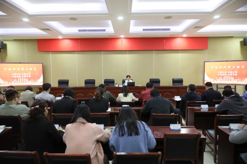 为深入学习贯彻习近平总书记关于教师队伍和师德师风建设重要论述,贯彻落实党中央决策部署,3月24日,学院召开“师德师风警示教育”专题培训会。学习传达上级文件精神,通报相关典型案例,推动压实工作责任,进一步加强和改进师德师风建设。会议由学院党委副书记、工会主席、副院长王蕾主持。各职能部门、二级学院党政主要负责人40余人参加。