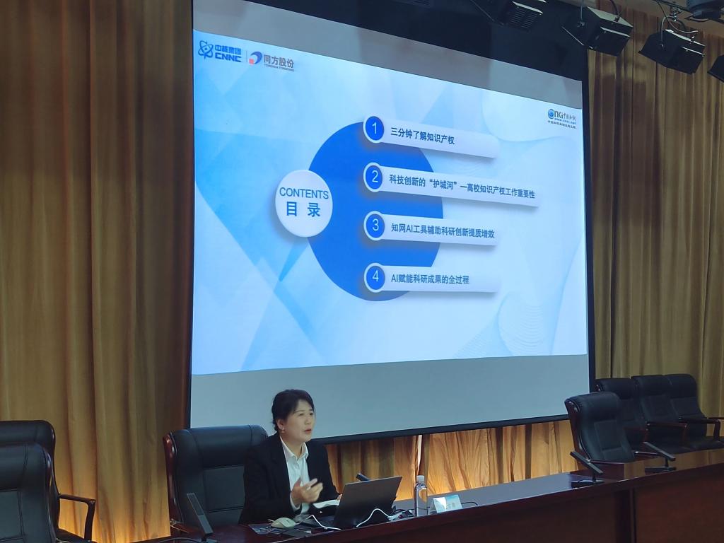在人工智能与知识产权系列讲座环节, 学院副院长吴国旭出席并致辞。 学院有幸邀请天津市知识产权保护中心顾珍珍和中国知网(天津分公司)总经理王敏到校宣讲。顾珍珍从专利快速预审服务角度讲解高水平专利申请和保护的要点;王敏则结合当下人工智能热点话题,将人工智能工具应用于知网数据库,加速知识产权管理向数智化转型升级的相关成果进行了展示,为学院开展科研与知识产权管理开辟了新的思路。