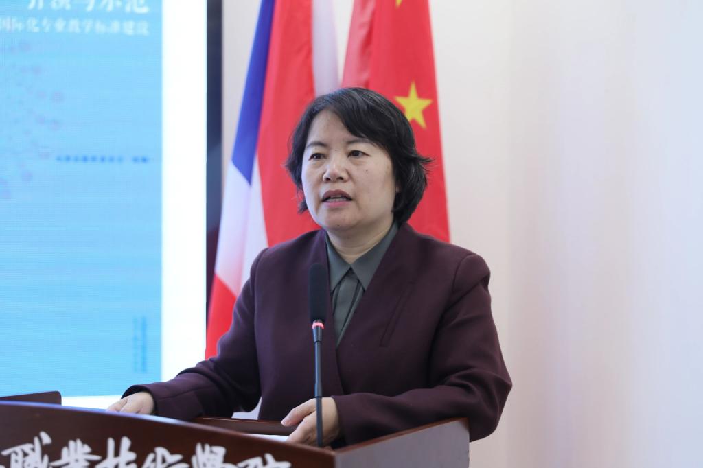 杨延作了题为《鲁班工坊国际品牌建设与EPIP全球推广》主旨报告。她系统回顾了鲁班工坊建设历程与发展成果,重点介绍了该项目在职教体系建设、产教融合发展等方面的创新举措以及EPIP教学模式的推广实践,特别对泰国鲁班工坊的建设成就给予了充分肯定。杨延表示,鲁班工坊研究与推广中心将持续支持泰国鲁班工坊建设,希望泰国鲁班工坊发挥好“技术驿站”作用,实现新突破。