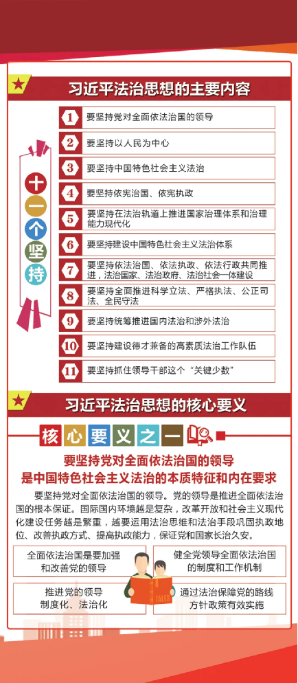 为更好地让广大干部群众了解掌握习近平法治思想。下面,一图读懂总书记的这“十一个坚持”↓↓↓