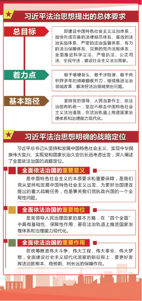全面依法治国,是坚持和发展中国特色社会主义的本质要求和重要保障,事关我们党执政兴国,事关人民幸福安康,事关党和国家事业发展。