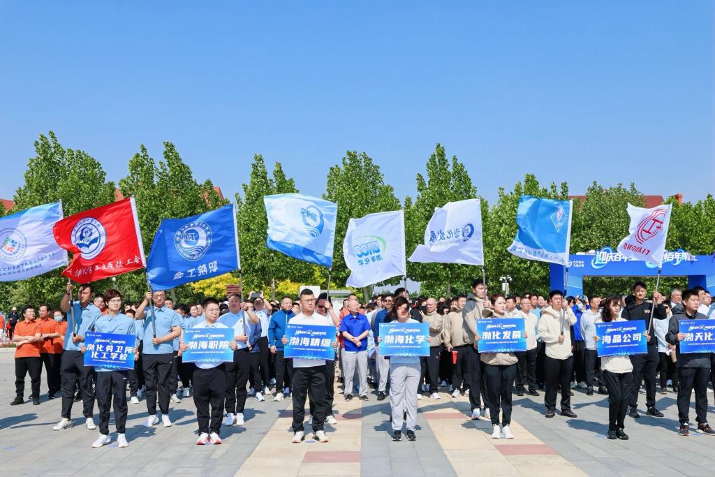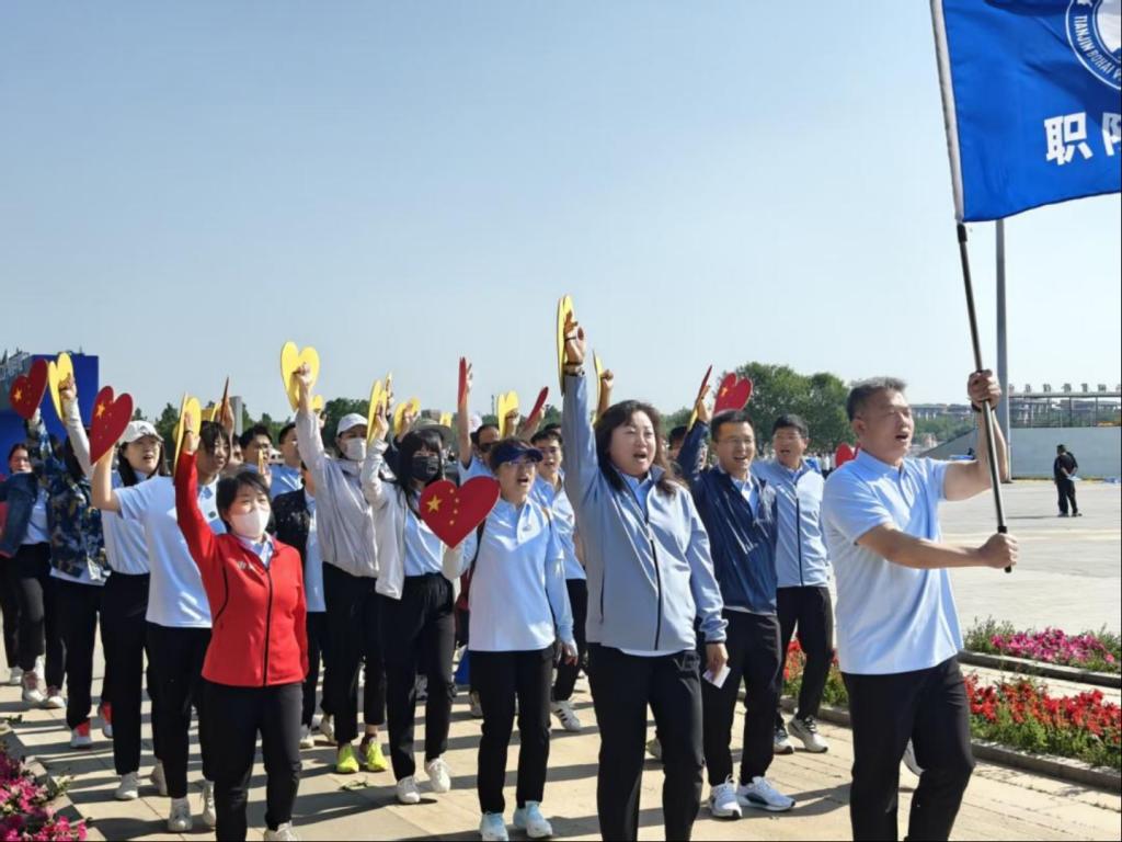 5月17日上午,由渤化集团工会主办的“迎庆百年工运 再创百年辉煌”职工健康行活动,在武清区南湖绿博园拉开帷幕。学院作为化工职教领域的重要力量,组织教职工组成方队响应号召踊跃参与,党委书记魏炳举,党委副书记、院长花玉香,党委副书记、工会主席、副院长王蕾,副院长柳宏昌带队参加。