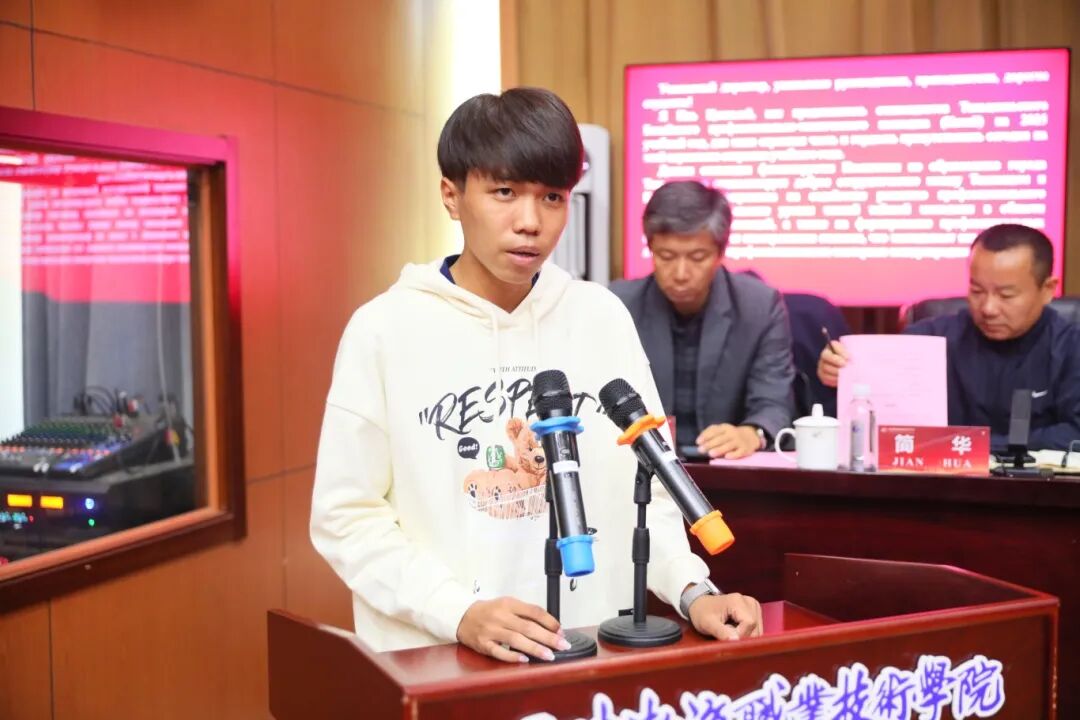 泰国学生尹靖宇、塔吉克斯坦学生玛撒作为留学生代表发言。尹靖宇对学院提供的学习机会表示感谢,承诺将专注学业、精进技能、提升汉语,以优异表现回报各方信任。玛撒分享了初到中国的喜悦,讲述了对中国文化的浓厚兴趣,并表示期待与泰国同学亲如一家、互帮互学,共同进步,在渤海职院携手度过充实而难忘的求学时光。
