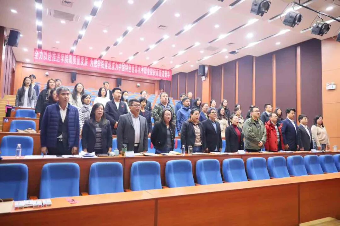 学院领导班子成员、会员代表参加会议,第四届工会委员会委员、党群部门部分负责人作为列席代表出席会议,学院党委书记魏炳举讲话,党委副书记、院长花玉香主持开幕式,党委副书记、工会主席、副院长王蕾主持后续会议并作工会委员会工作报告。