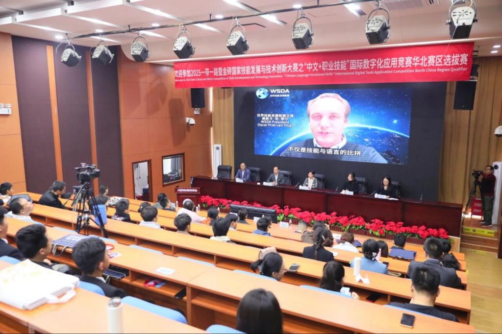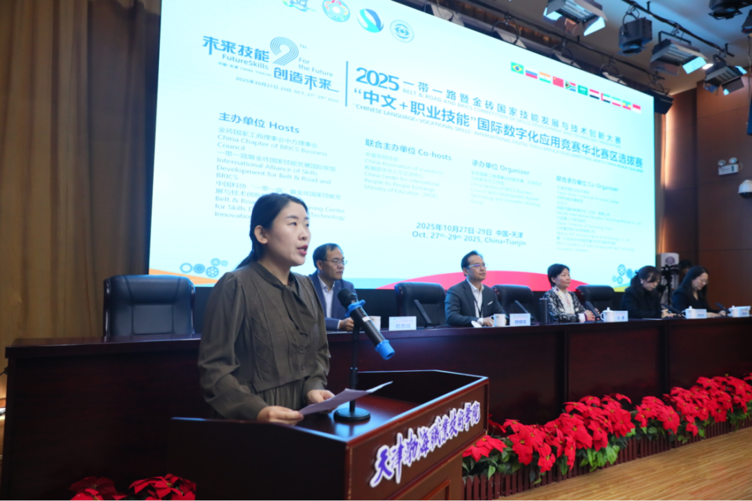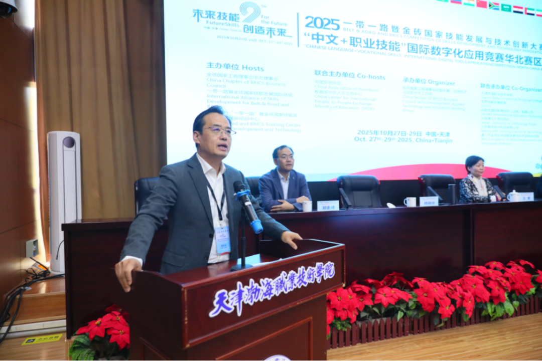 10月27日至29日,2025一带一路暨金砖国家技能发展与技术创新大赛之“中文+职业技能”国际数字化应用竞赛华北赛区选拔赛在学院举行。学院党委书记魏炳举出席闭幕式并致辞,党委副书记、工会主席、副院长王蕾,南昌职业大学副校长杨晓培,世界技能发展联盟中国区首席代表李华杰出席开闭幕式。赛事聚焦数字化应用与中文能力融合,吸引了150余名选手参赛,展现了学院在职业教育与国际化融合方面的组织实力。