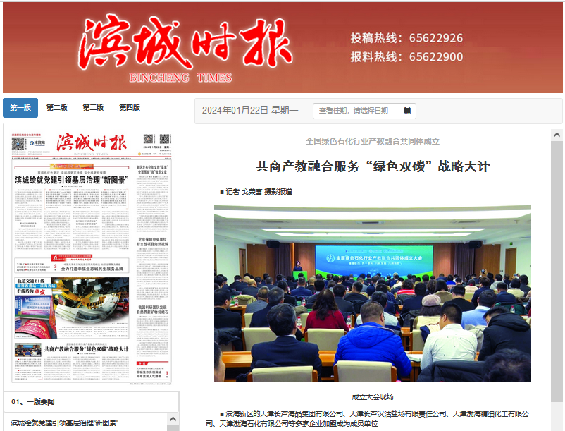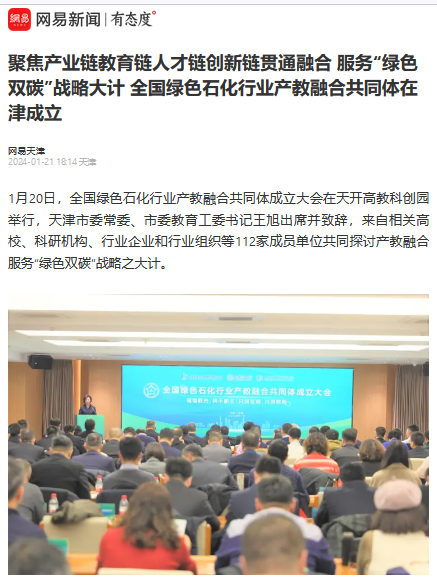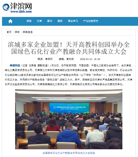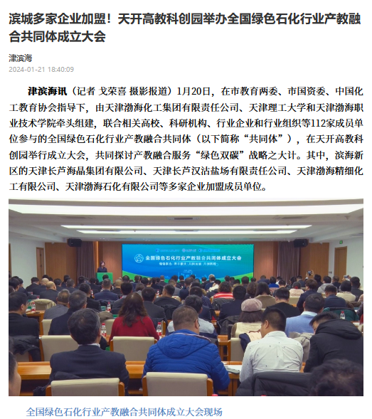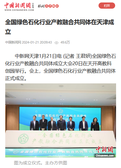 1月20日,由天津渤海化工集团有限责任公司、天津理工大学和新葡萄奔驰AMG官网牵头组建的全国绿色石化行业产教融合共同体成立大会在天开高教科创园举行,来自相关高校、科研机构、行业企业和行业组织等112家成员单位共同探讨产教融合服务“绿色双碳”战略之大计。本次活动得到媒体广泛关注,新华社等多家媒体进行报道。