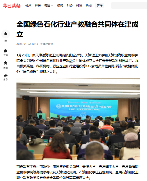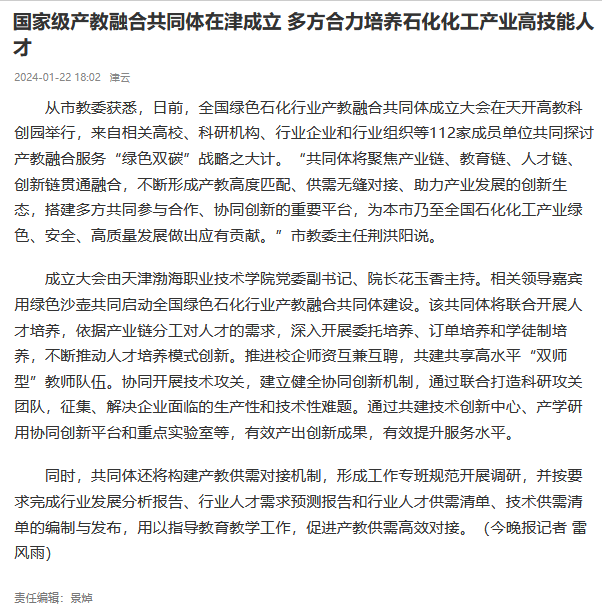 全国绿色石化行业产教融合共同体在津成立——中国战略新兴行业网