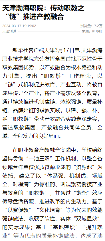 天津渤海职院:传动职教之“链”推进产教融合——新华社