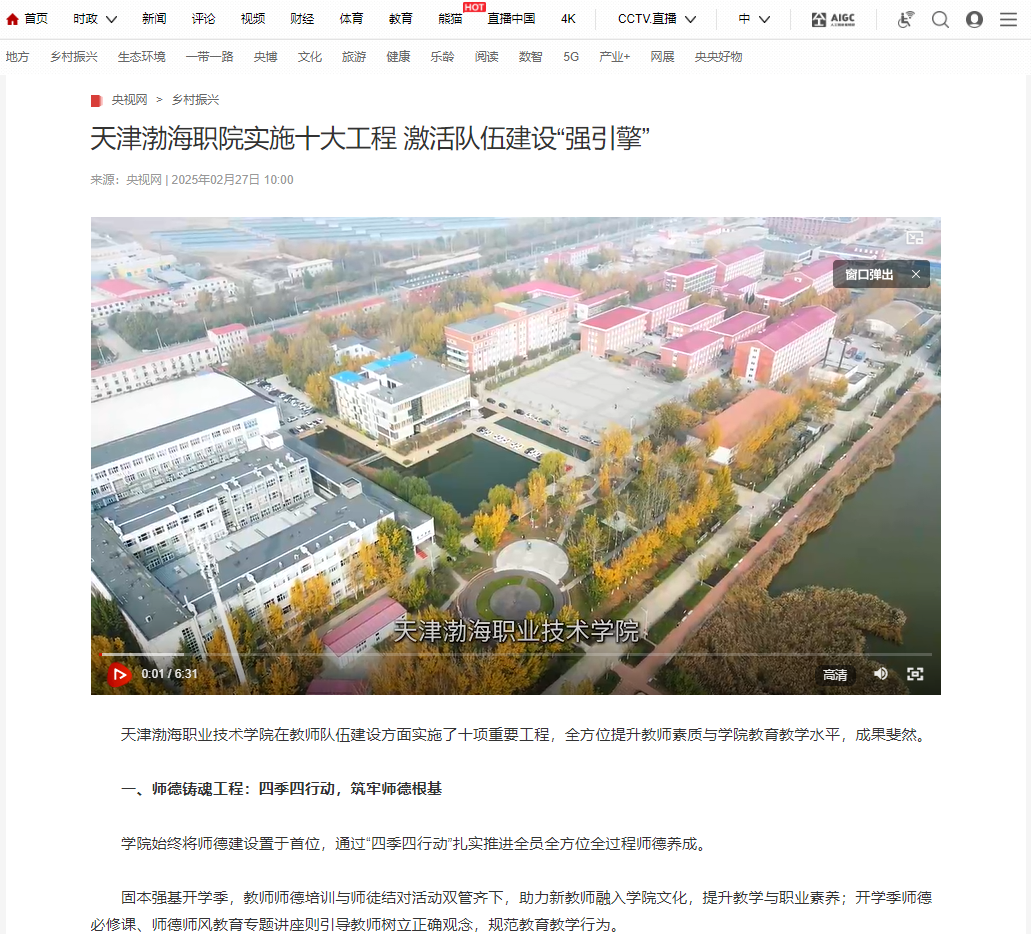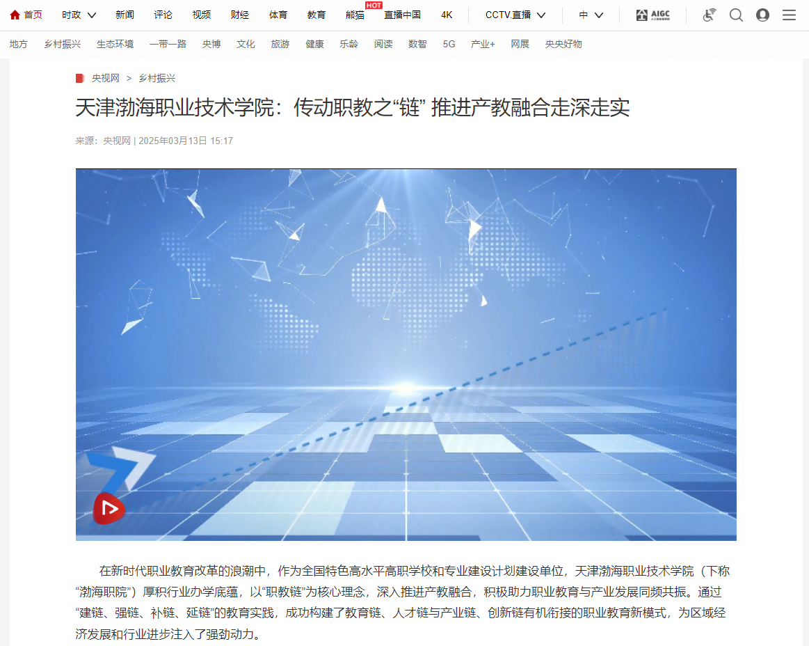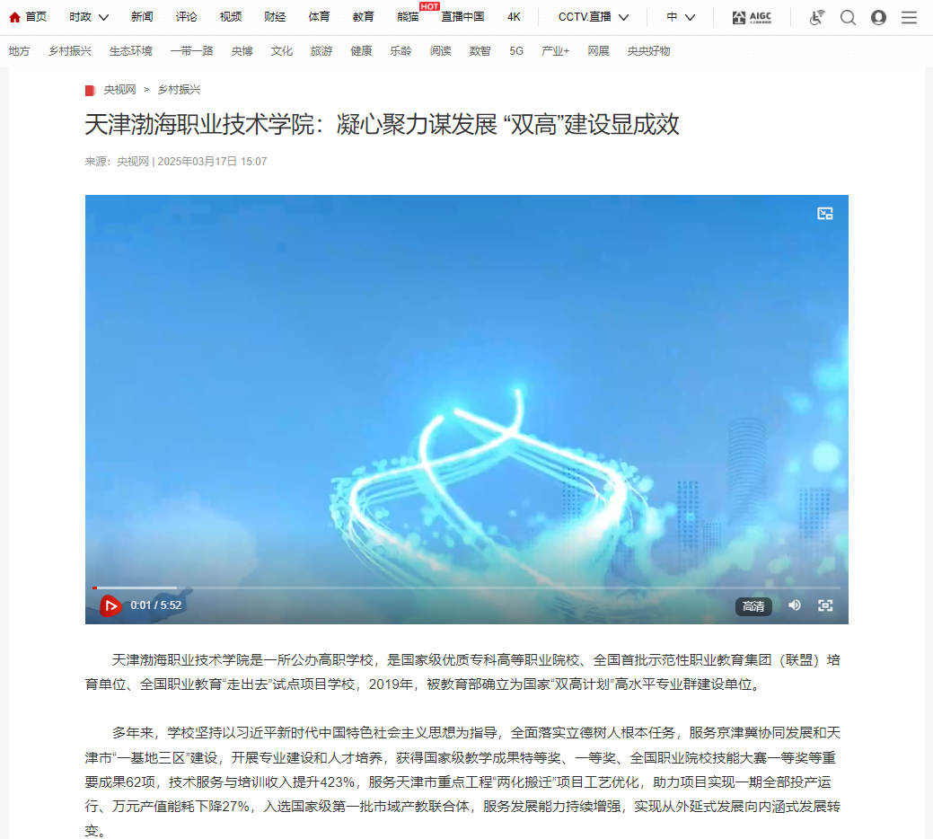 近日,央视网立德大讲堂栏目分别以《凝心聚力谋发展 “双高”建设显成效》《新葡萄奔驰AMG官网:传动职教之“链” 推进产教融合走深走实》《实施十大工程 激活队伍建设“强引擎”》为题,相继报道学院在“双高计划”建设、产教融合以及师资队伍建设方面的成果!