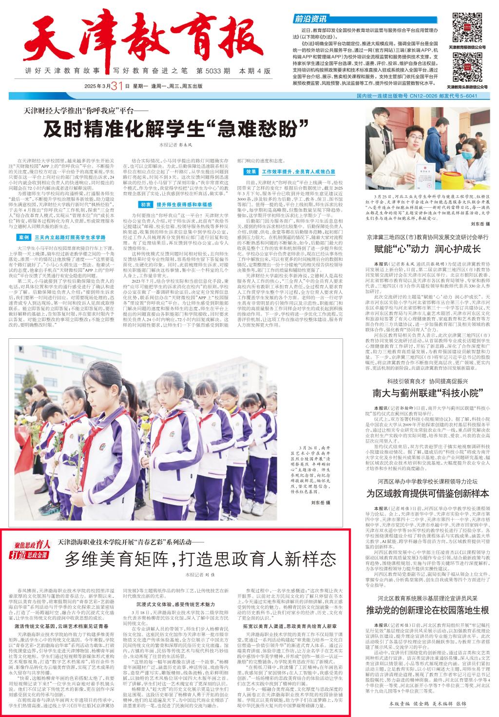 近日,《天津教育报》对学院进行了报道,内容涵盖党建合作与美育创新实践,展现了学院在教育领域的积极探索与突出成果。